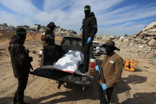 أفادت مصادر محلية، ببدء إجراءات تسليم جثة أسير إسرائيلي -عبر اللجنة الدولية للصليب الأحمر- عثرت عليها كتائب القسام وسرايا القدس شمال قطاع غزة. وكان ديوان رئيس الوزراء الإسرائيلي بنيامين نتنياهو...